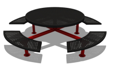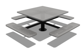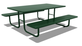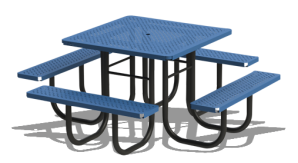 Mesas de picnic marca Monopark, fabricadas de acero al carbón calibre 14, tubo rolado de 2”, pintura electroestática horneada, ideales para uso rudo y climas extremos.